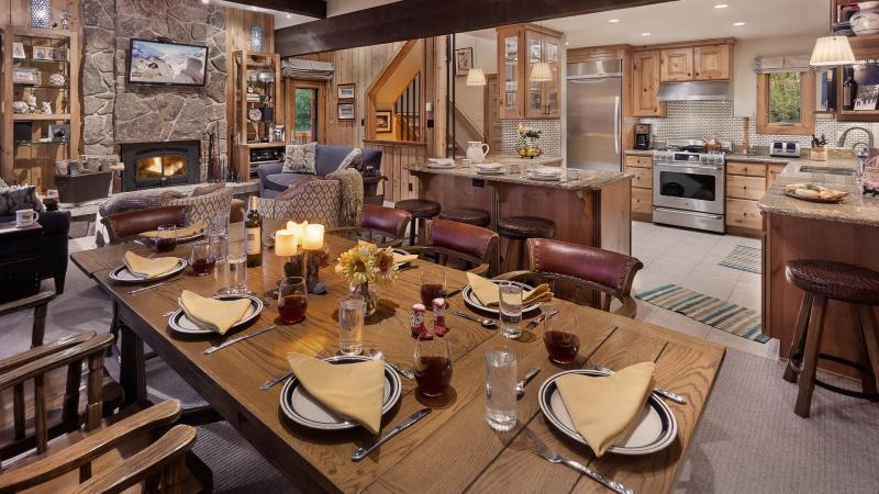 This home is located right on the Right-O-Way ski trail (beginner), and provides easy access on/off the mountain. When you aren't enjoying slope activities, enjoy the picturesque trail views. Right-O-Way's open living plan features a wood-burning fireplace with cozy sitting areas around a large flat screen making it easy to unwind and relax. The newly remodeled kitchen has been styled with high end stainless appliances and granite counters. Any chef could be inspired by the views and find this location an easy place to create perfection. The kitchen opens to the dining area with seating for eight. The dining area offers wonderful views of both the mountain and fireplace.