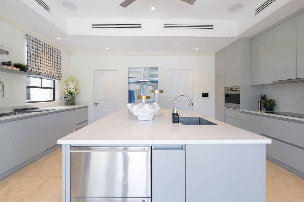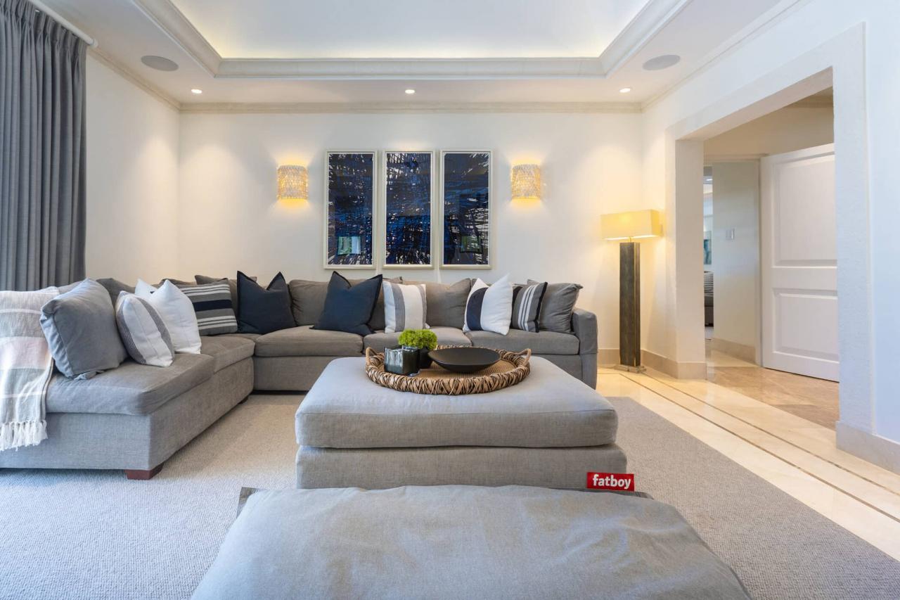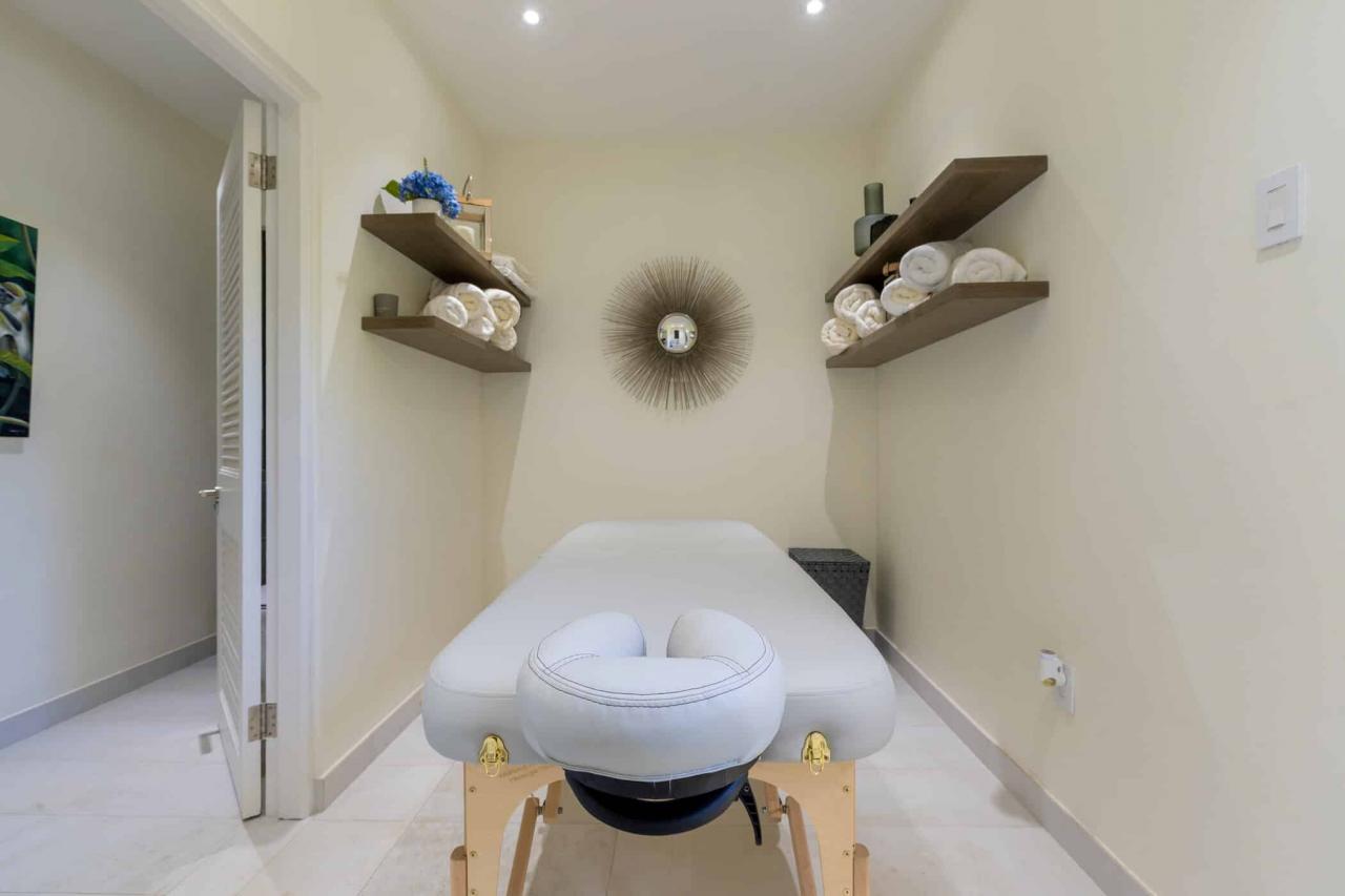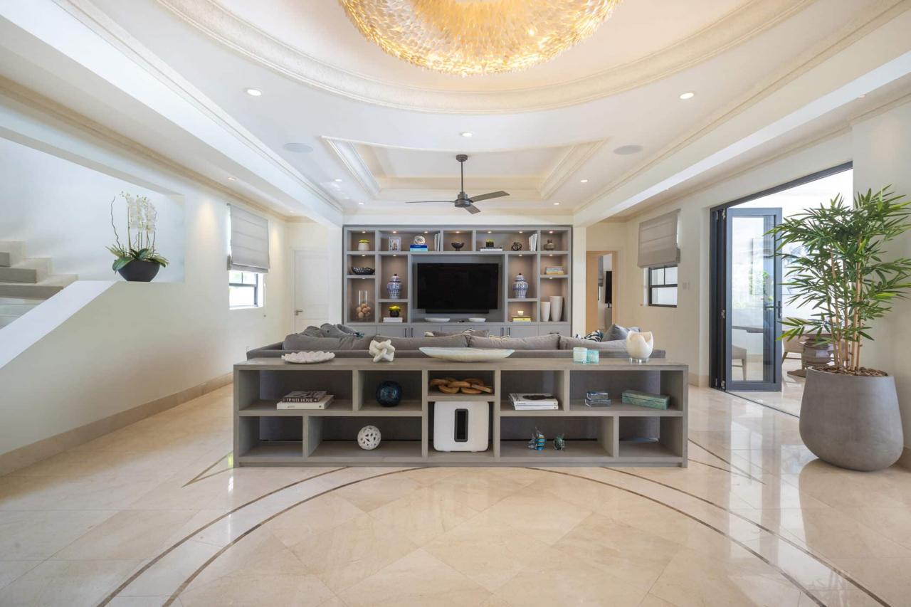 The villa’s interiors feature soaring ceilings, sleek contemporary furnishings, and carefully curated décor that create an atmosphere of understated luxury. A fully automated entertainment system, Apple TV, and Sonos sound system provide effortless modern convenience throughout. The main residence includes four beautifully appointed bedrooms, while a separate self-contained cottage offers two additional suites—ideal for guests or extended family seeking privacy. With three king suites and three twin bedrooms, the layout offers exceptional flexibility for families and larger groups.
