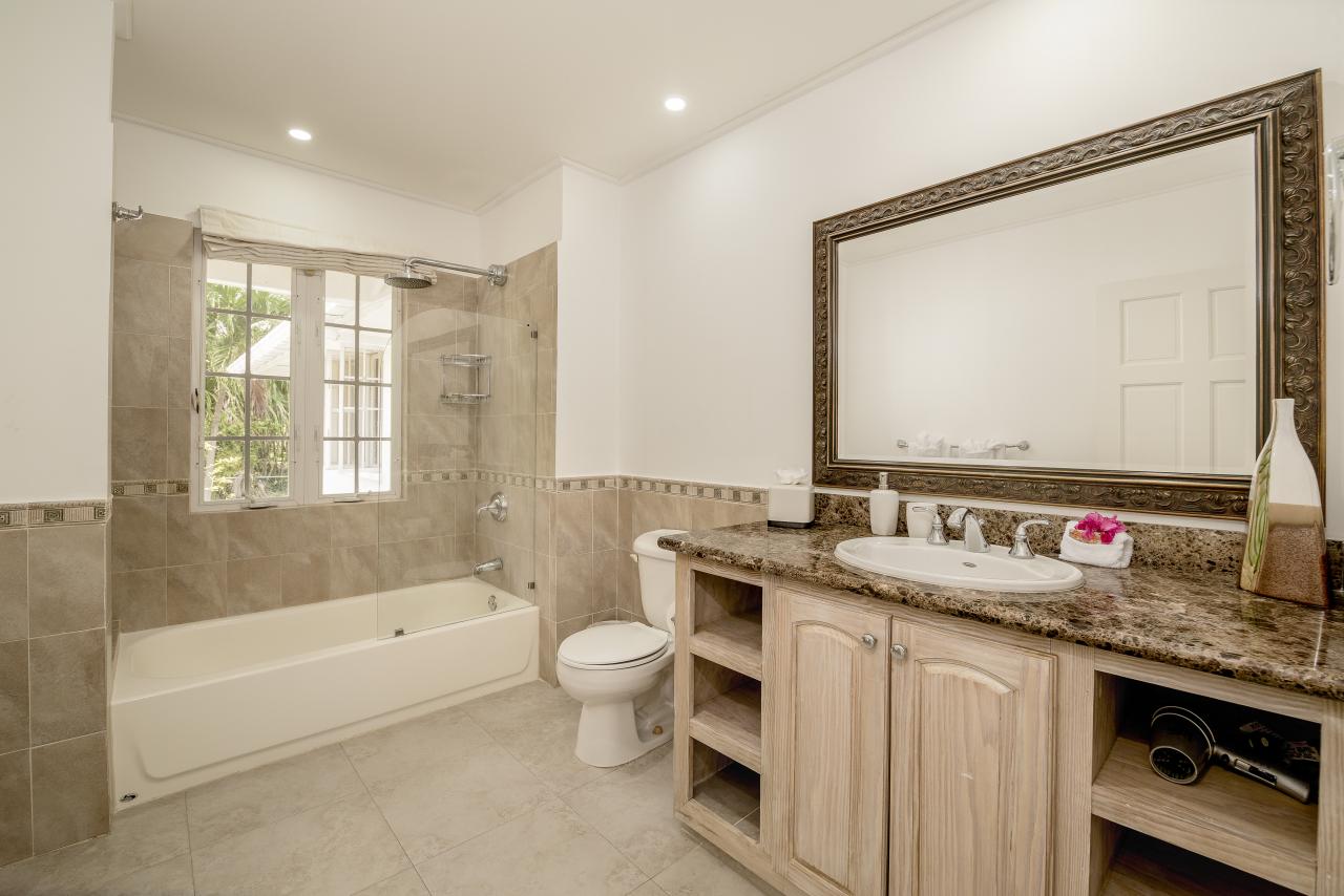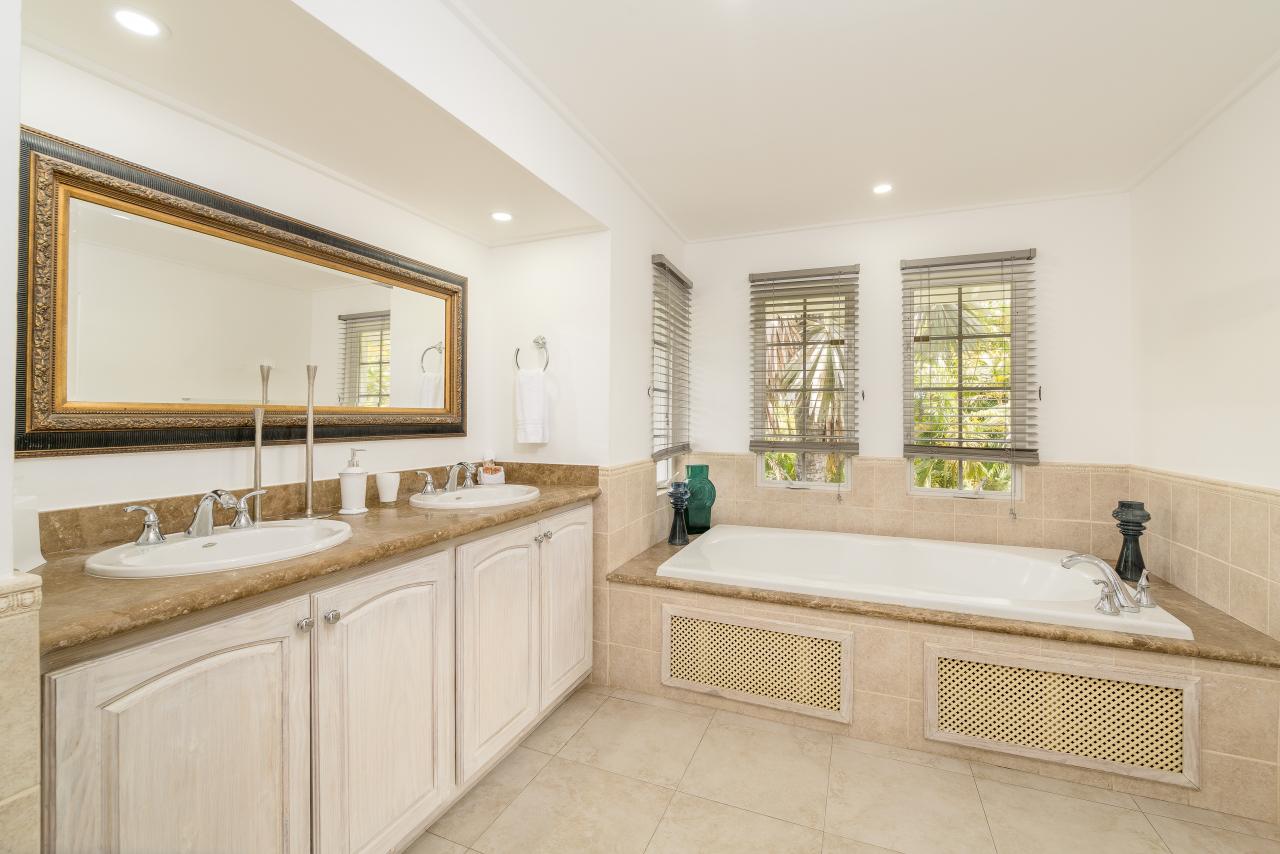 Rose of Sharon is an elegant 6 bedroom villa located in Sandy Lane Estate in pristine condition . There are 4 double air-conditioned bedrooms in the main house on the first floor, with two Master bedrooms each having its own ensuite bathroom and the other 2 bedrooms also with ensuite bathrooms. The additional 2 bedrooms are located in a recently built guest cottage across from the pool, with their own living and dining areas and fully equipped kitchen.