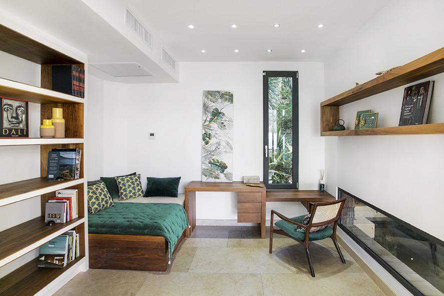 The first three bedrooms are located on the main level, including the master suite, which opens directly onto the tropical garden, offering a refreshing and exotic start to each morning. One of the other two rooms features two large bunk beds, providing the ideal setup for children and close proximity to the master bedroom.