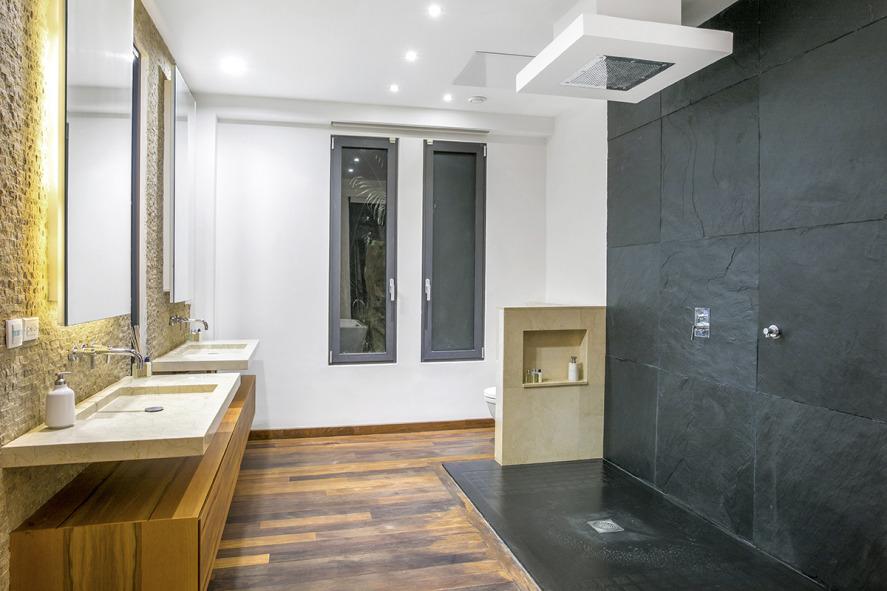 Timber and stone are featured throughout the villa: on the walls, the furniture and in the unique decorative elements. Decorations are made of earthy colors with touches of gold and emerald green. The villa successfully combines modern style and natural elements affording guests the opportunity to share beautiful moments in style while never forgetting the natural beauty that surrounds them.