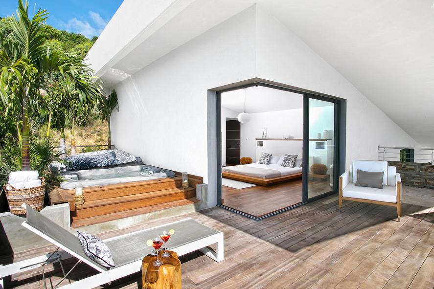 · Bedroom 2: King bed, en suite bathroom with stand-alone rain shower, AC, private terrace with outdoor furniture & hot tub, ocean view