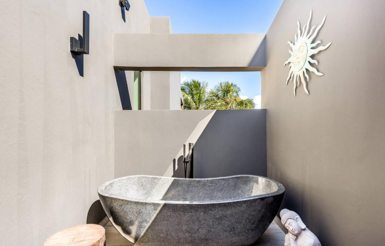 Beach Escapes Villa One offers the ultimate private getaway on Chalk Sound, combining contemporary style with serene seclusion. This newly constructed one-bedroom villa features elegant décor, modern amenities, and standout touches like an outdoor tub made from handmade Balinese crushed stone. Guests can wake up to the gentle sound of waves on their private beach, enjoy stunning ocean views from the outdoor shower, or relax in the private pool surrounded by lush landscaping. The villa perfectly balances comfort, luxury, and a connection to the natural beauty of the island.