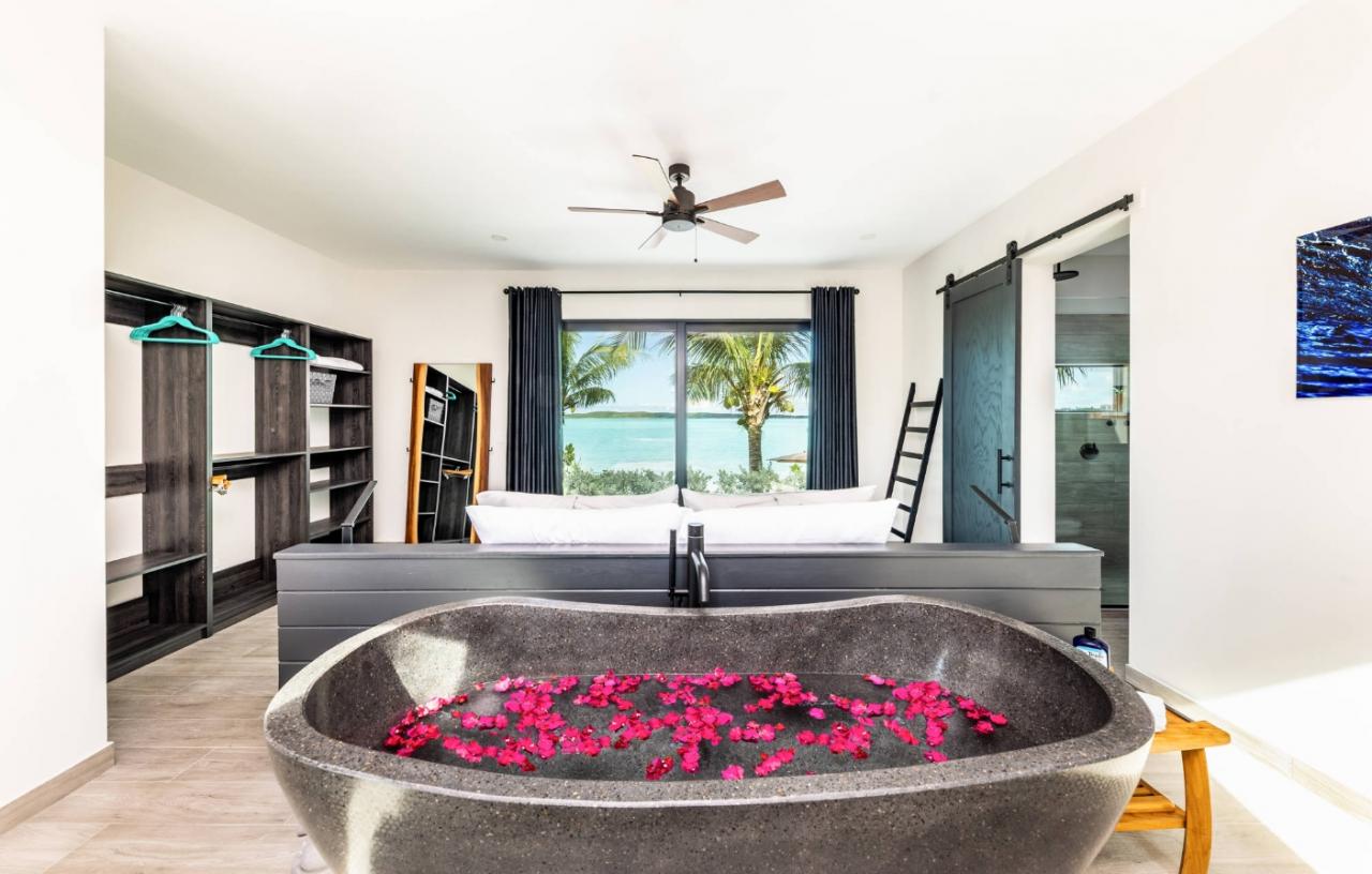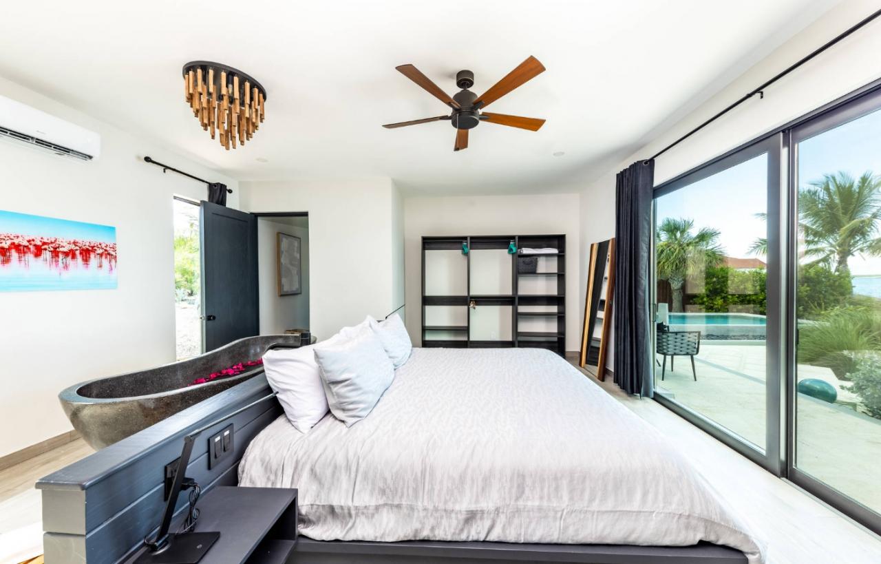 Beach Escapes Villa Two offers the ultimate private getaway on Chalk Sound, combining contemporary style with serene seclusion. This newly constructed one-bedroom villa features elegant décor, modern amenities, and standout touches like an outdoor tub made from handmade Balinese crushed stone. Guests can wake up to the gentle sound of waves on their private beach, enjoy stunning ocean views from the outdoor shower, or relax in the private pool surrounded by lush landscaping. The villa perfectly balances comfort, luxury, and a connection to the natural beauty of the island.