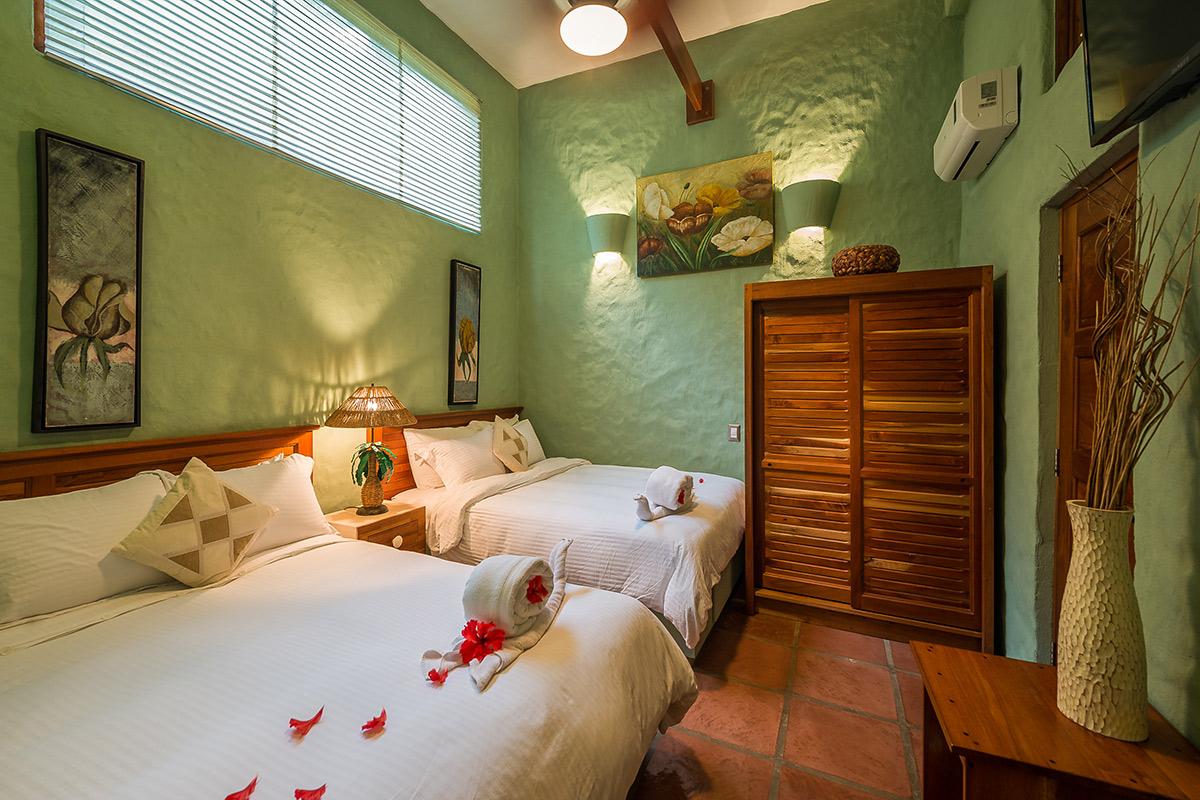 • Bedroom 2: King bed, shared bathroom, AC, ceiling fan, safe, phone, satellite TV, ocean view, access to pool, located on the main floor
