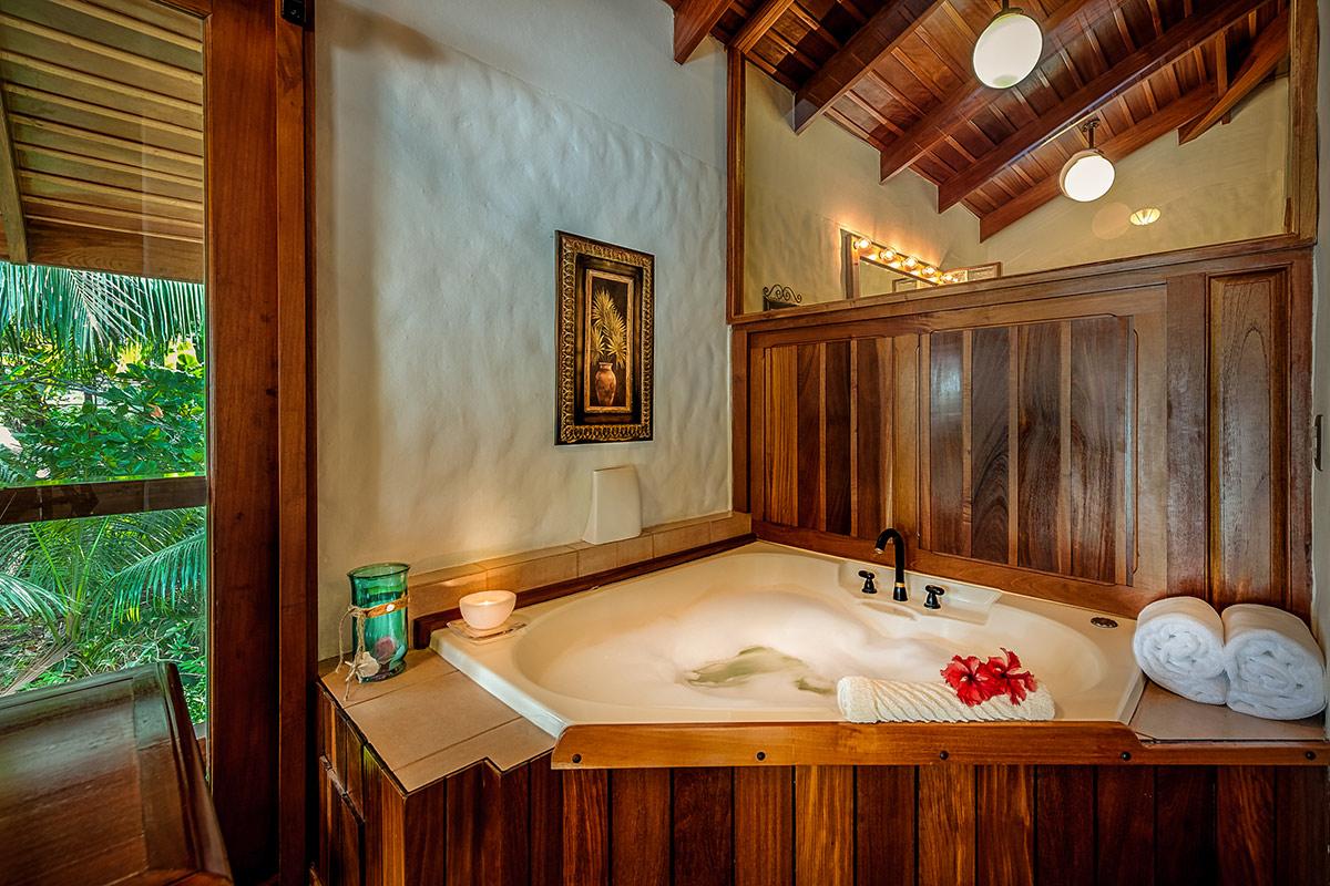 • Bedroom 4: King bed, en suite bathroom with jacuzzi tub and shower, AC, ceiling fan, safe, phone, satellite TV, balcony, ocean view, located on the second floor