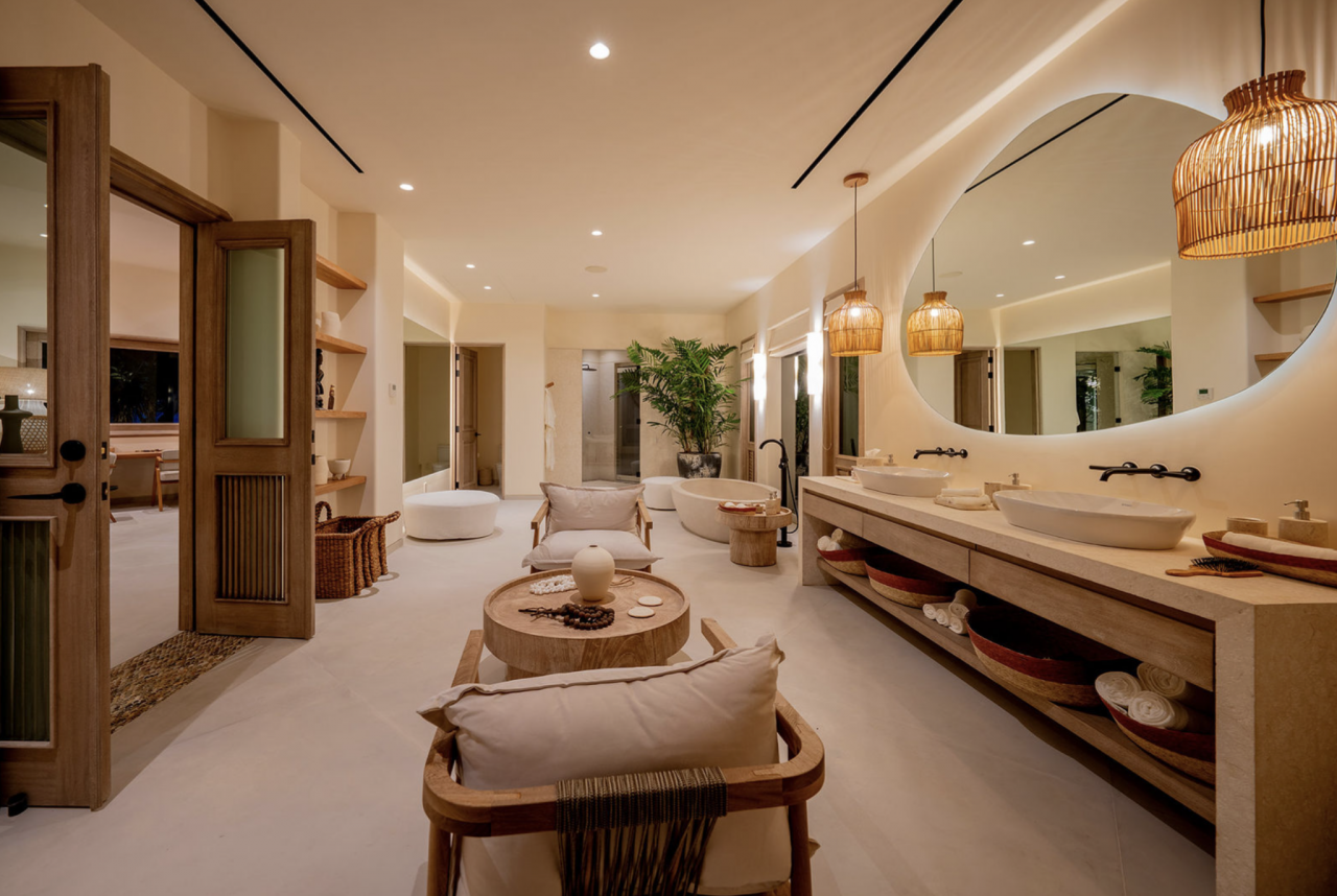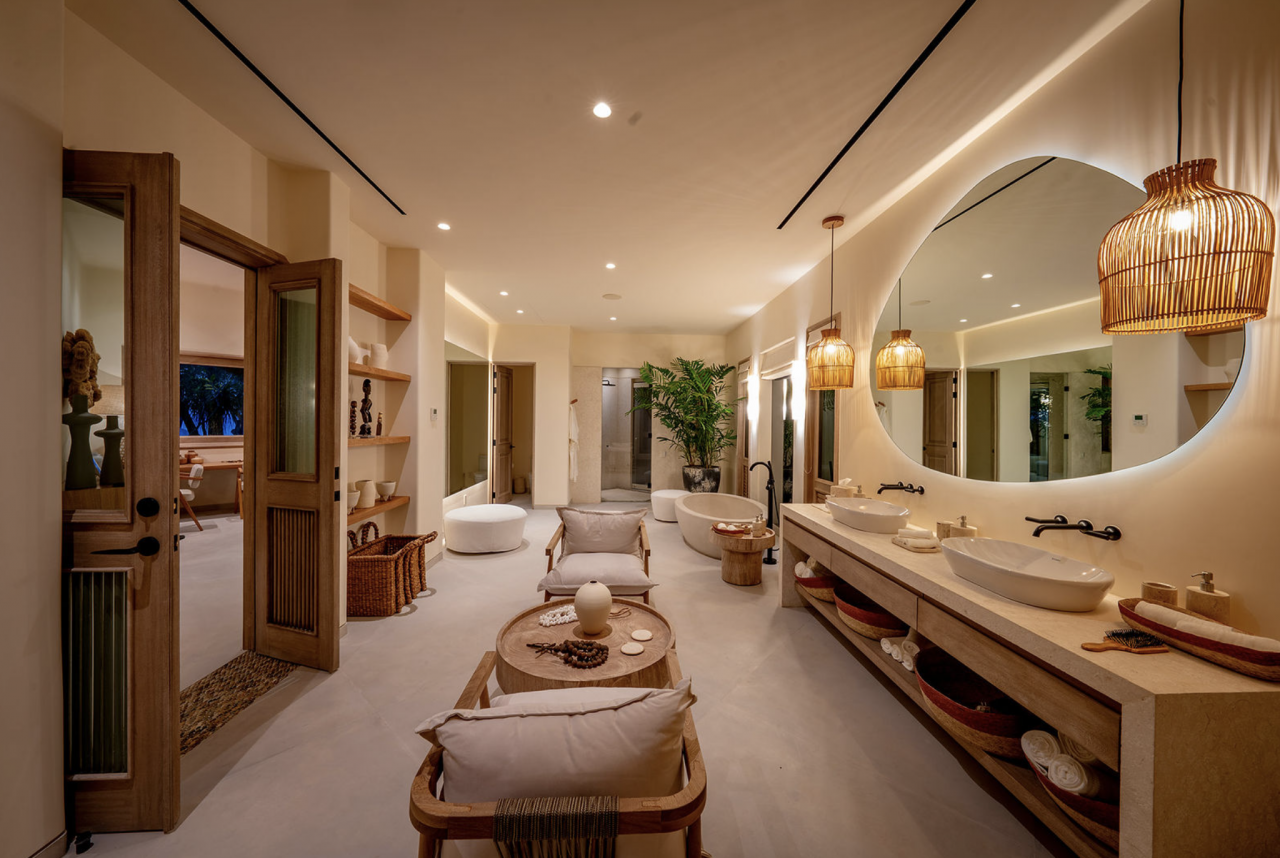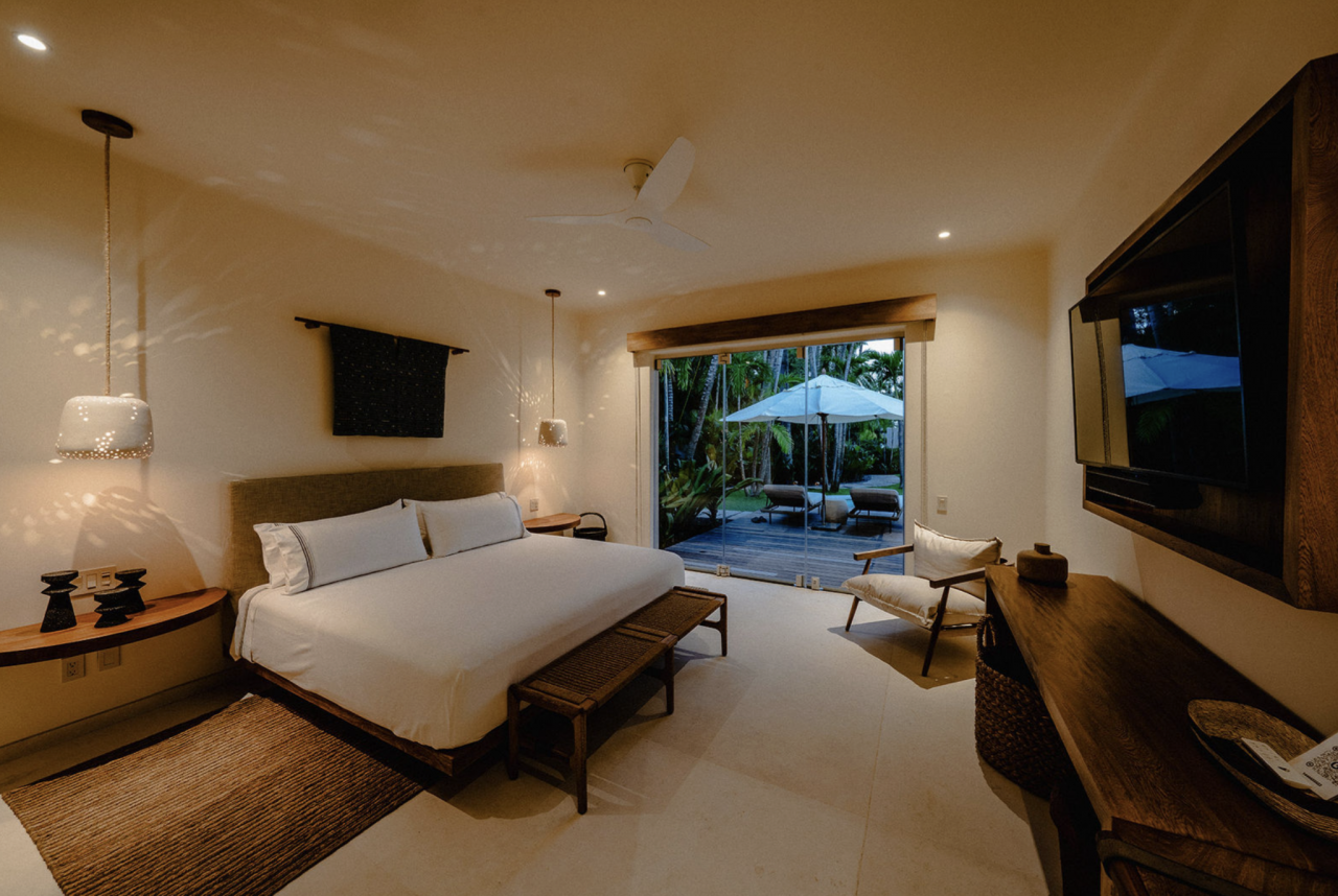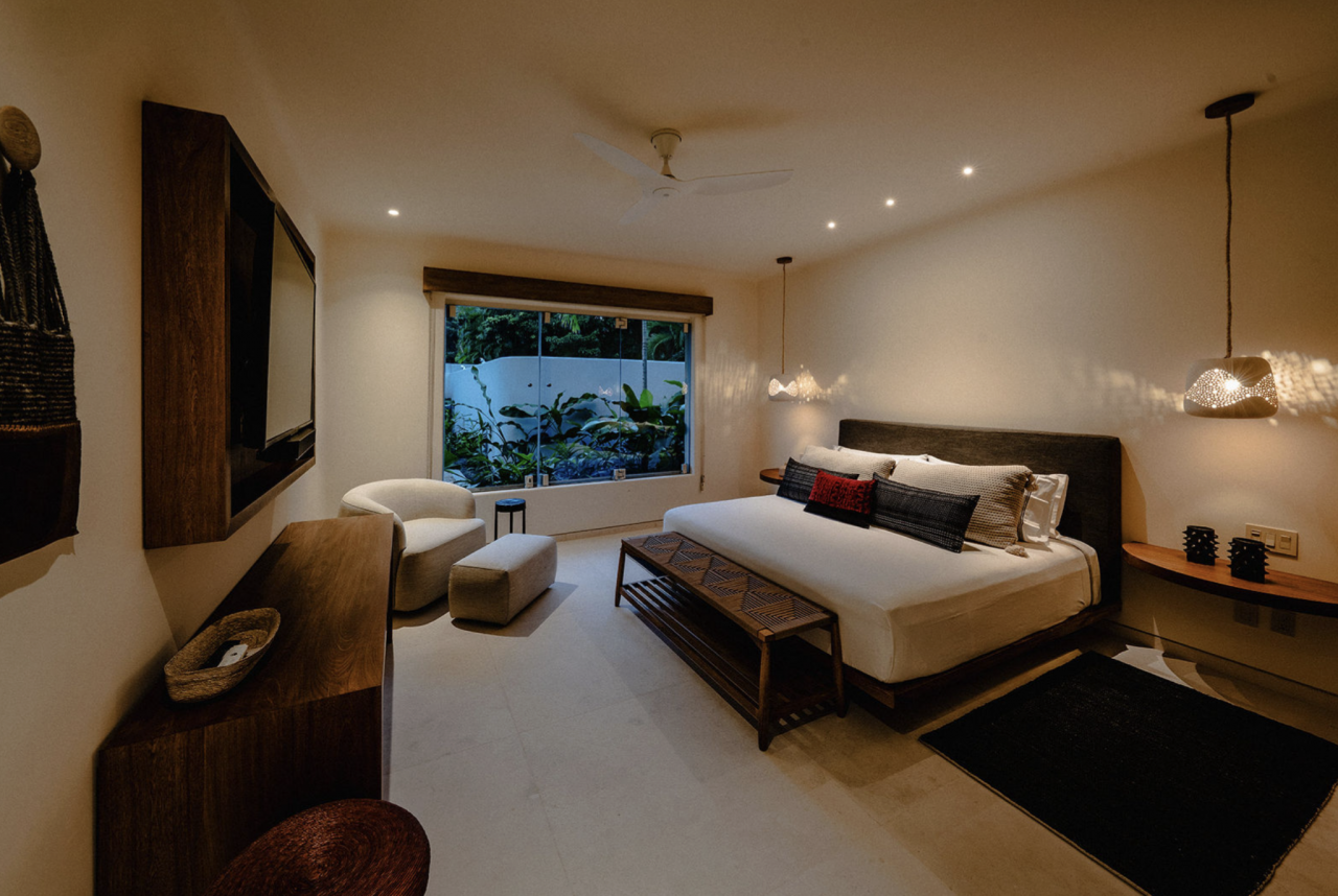- Bedroom 4: King bed, en suite bathroom with stand along shower & bathtub, walk-in closet, TV, AC, desk, safe, ceiling fan, private terrace, access to pool area, ocean view