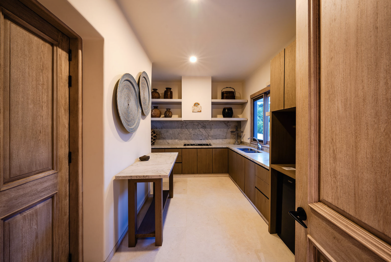 The indoor amenities at Casa Bella rival it's spectacular outdoor amenities. This luxury villa opens into the beautiful living area, perfect for entertaining guests before dinner. The formal dining area can seat 14 guests and its retractable glass doors open the space into the lush, green gardens outside. The home also boasts a fully equipped kitchen, every chef's dream! Beautiful finishes, loads of counterspace, and a wine refridgerator are just a few items that make this kitchen truely spectacular.
