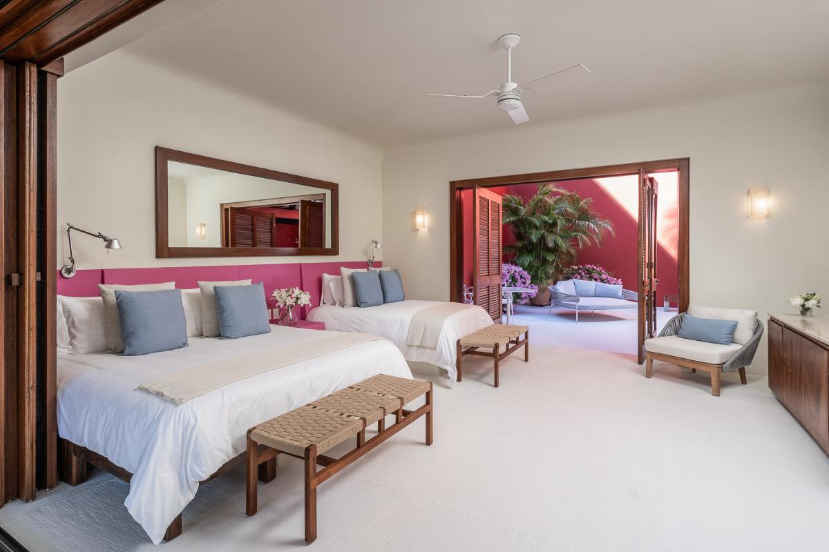 Cabanas Rooms A and B: Located at the villa's main entrance, the charming cabanas offer the option to increase your occupancy to 7 bedrooms. Two rooms with two twin-size beds or optional set up to One King Size Bed. The suite features an in-room minibar, Nespresso® Coffee maker, television and Apple TV, and private baths with shower, vanity makeup/shaving mirror, Hairdryer, Soft terry cloth bathrobes, L’Occitane signature toiletries, and more.