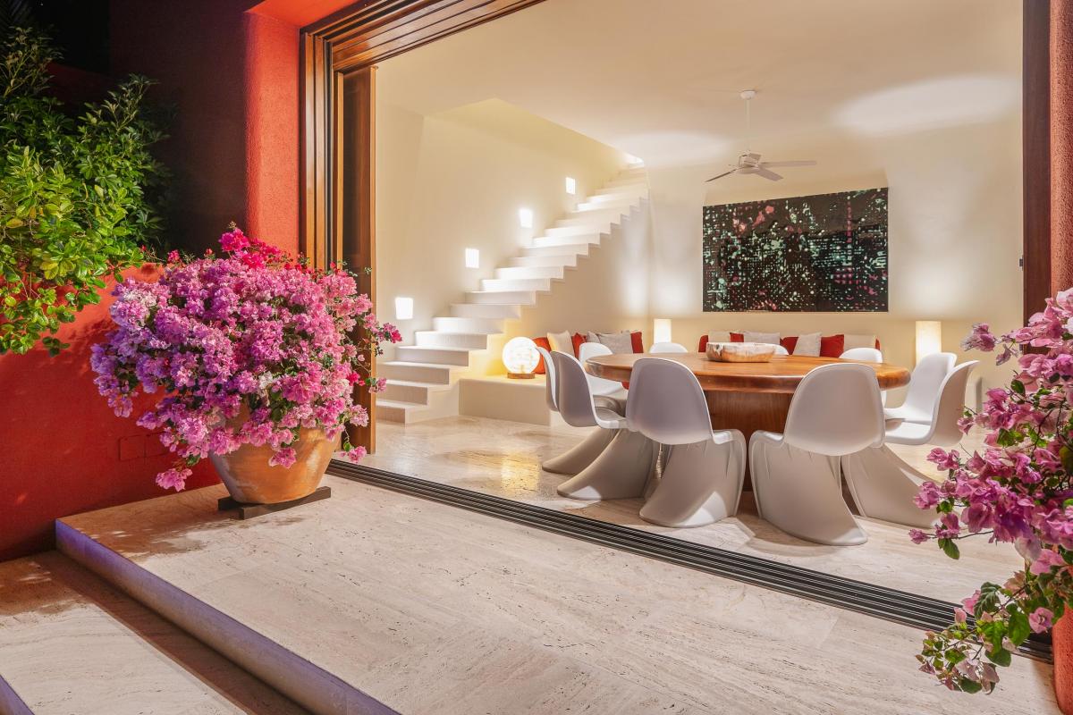 Villa Pacifica is fully staffed with a house manager and an on site housekeeper, chef and butler for your Punta Mita vacation. From the moment you arrive at Villa Pacifica, any stresses that you may have brought with you will instantly melt away. Friendly, attentive villa staff will greet you with freshly made margaritas and whisk away your luggage to your room. Guests enter the compound through a rear garden featuring a half moon pond, palm trees and an expansive grass area. From this rear garden you walk through an entrance and down a beautiful travertine walkway. On the right is a huge royal palm courtyard that looks through the main living area to the ocean. You will be guided directly into Villa Pacifica's great room. This gorgeous open living and entertaining area has multiple seating and dining areas and overlooks the pool and ocean. This vista will tell you that your Punta Mita vacation has officially begun!
